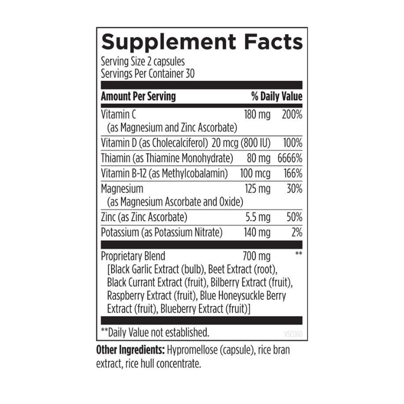 - Proprietary Plant Extract Blend (700 mg): Features black garlic, beet, bilberry, raspberry, blue honeysuckle berry, currant, and blueberry extracts for synergistic support of NO production and vascular health.
